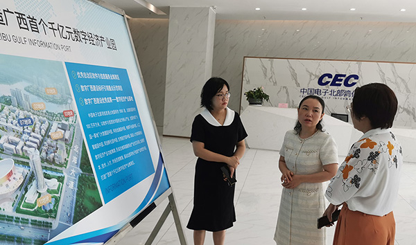2023年7月19日上午,北海市市委常委、市紀(jì)委書記劉纓帶隊到中國電子北部灣信息港開展“壯大實(shí)體經(jīng)濟(jì)推動高質(zhì)量發(fā)展”調(diào)研。中國電子北海產(chǎn)業(yè)園發(fā)展有限公司副總經(jīng)理劉曉娟現(xiàn)場向劉纓書記匯報了信息港項目建設(shè)、運(yùn)營情況。